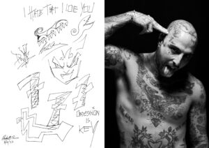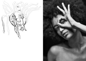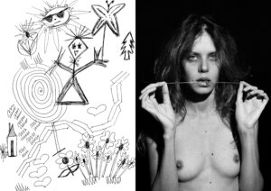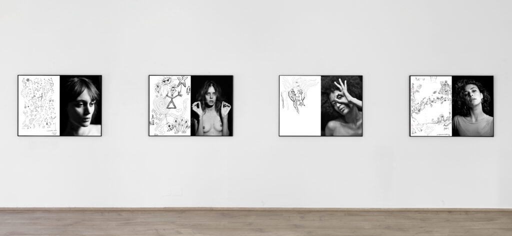 Oltretutto is an immersive experience that investigates the concepts of sign and perception, leading the viewer into a hybrid territory between photography and symbolic language. It is a project in which Bucchi explores new forms of expression, arriving at a synthesis where photographic portraits, taken by the artist, are juxtaposed with the drawings made by the portrayed subjects themselves.